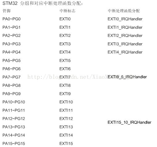 STM32的19个外部中断对应着19路中断线,分别是EXTI_Line0-EXTI_Line18: