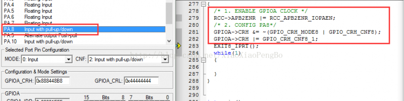 GPIOA->CRH &= ~(GPIO_CRH_MODE8 | GPIO_CRH_CNF8);