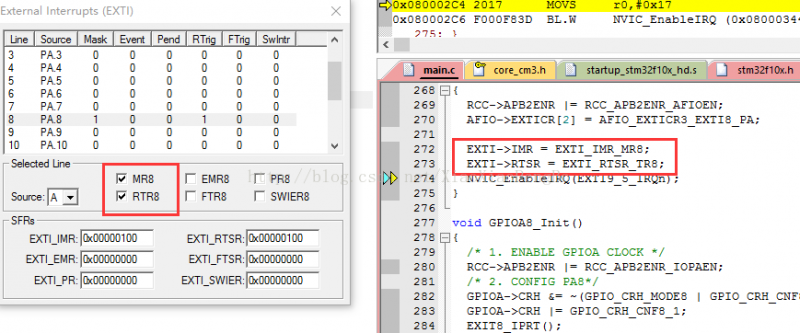 EXTI->RTSR = EXTI_RTSR_TR8;