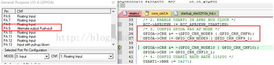 GPIOA->CRH |= GPIO_CRH_MODE9 |GPIO_CRH_CNF9_1;