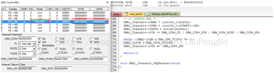 DMA1_Channel4->CCR |= DMA_CCR4_PL |DMA_CCR4_DIR | DMA_CCR4_MINC | DMA_CCR4_EN;