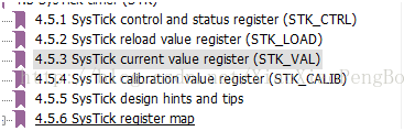 SysTick要参照Programming manual手册,寄存器一共有4个,如图: