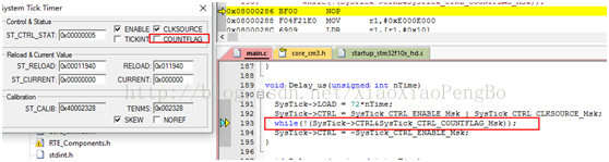 直到为bit 16为1的时候完成us的延时,因为systick只是一个24bit的计数器,所以总有个最大延时,所以采用delay ms去实现更多的延时
