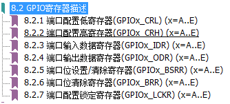 通用GPIO寄存器一共有以下几个寄存器