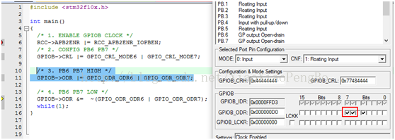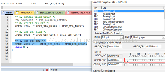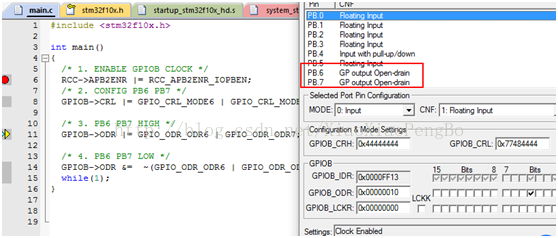 运行这个,可以在debug中看到GPIOB clock由disable变为enable