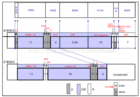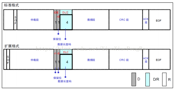 标准帧和扩展帧在这个段的格式也是相同的。如图所示: