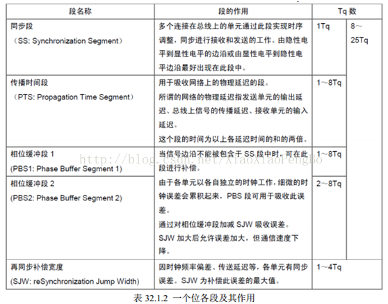 1位分为4个段,每个段又由若干个Tq构成,这称为位时序。