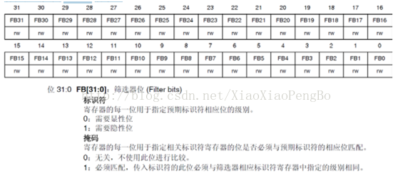 此外过滤器可配置为,屏蔽位模式和标识符列表模式。