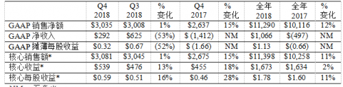 o2018年核心销售额114亿美元,核心每股收益1.78美元,均增长11%