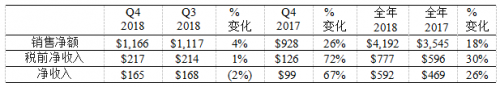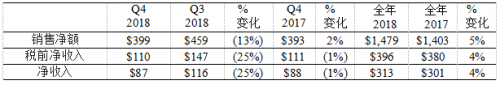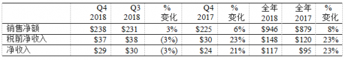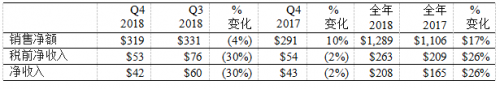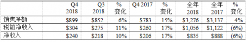 第四季度走势强劲,所有业务的销售额均同比增长,为2018年画上圆满句号