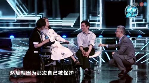 马思纯还会在适当的时候感动,提供女性观众有代入感的情绪和动作。两位帕金森患者艰难走上场时,她会不由自主地从椅子上站起来,关切地目送他们走到舞台中间再坐下。当向这对夫妇提问时,她会跪在轮椅边,亲切地看着他们的眼睛,认真听、肯定地重复他们说的话。
