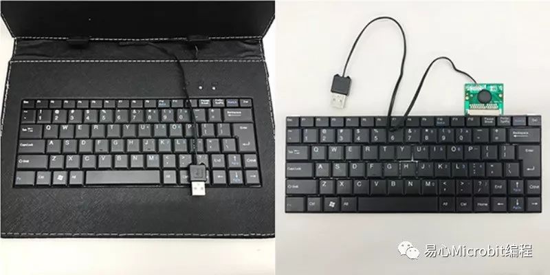 下一步拿出键盘,拆掉原先附的平板放置板,仅取出键盘,再透过 USB 线与树莓派连接。