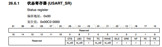 串口的状态可以通过状态寄存器USART_SR读取。USART_SR的各位描述如图所示:
