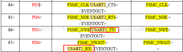USART2的TX,RX对应的PIN脚分别为:PD5,PD6
