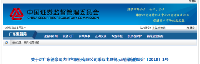 此外,笔者还发现,2019年1月7日,证监会广东证监局网站发布 (2019)1号、(2019)2号、(2019)3号、(2019)4号、(2019)5号行政监管措施决定书,因德豪润达存在擅自改变募集资金使用用途、遗漏披露重要关联交易事项等违规行为,对德豪润达及其时任董事长王冬雷等四名责任人采取出具警示函的行政监管措施。