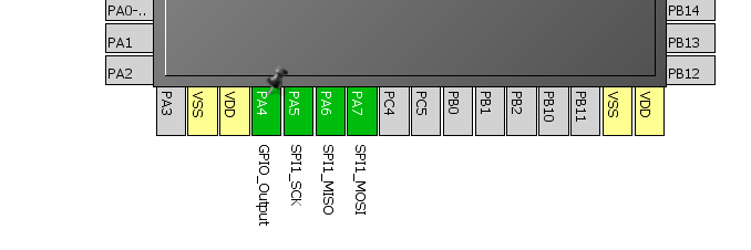 (3)勾选好后,PA5、PA6、PA7如下图,在配置PA4为普通io口,gpio_output