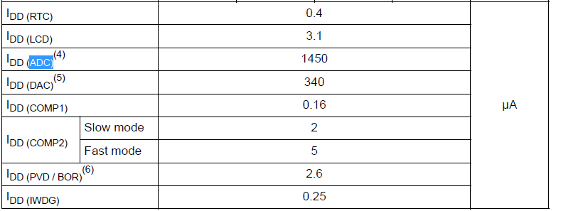 最近调试板子进入STOP模式后发现电流为mA级别,功耗降不下去,最终发现是ADC开启后,忘记关闭了,导致有1.45mA的电流消耗。