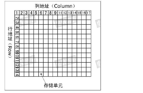 SDRAM 内部是一个存储阵列。可以把它想象成一个表格。和表格的检索原理一样,先指定行,再指定列,就可以准确找到所需要的存储单元。这个表格称为逻辑BANK。目前的SDRAM 基本都是4 个BANK。寻址的流程就是先指定BANK 地址,再指定行地址,最后指定列地址。这就是SDRAM 的寻址原理。存储阵列示意图如下: