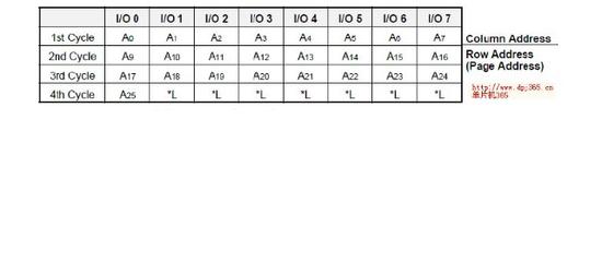 K9F1208 总共有64Mbyte,需要A0-A25 共26 个地址位。