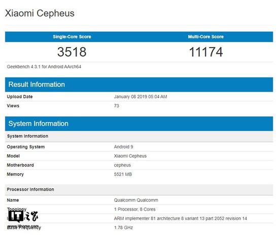 2019年02月14日 | 疑小米9跑分数据泄露:多核心11174分