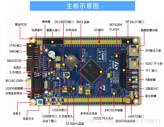 1.3. 基于Stm32f103zet6芯片的开发板(七星虫),如下图;