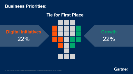 2018年,Gartner首次发现增长和数字化同时排在了企业CEO的工作重点首位,说明企业已经对重视数字化发展逐渐重视起来。40%的首席信息官认为消费者是数字化转型过程的驱动力,企业希望用数字化的手段与消费者进行交流,引导并购买产品。Gartner预测2年之内,超过50%的消费行为将不必在看到实物就可下单购买,比如现在的电商。