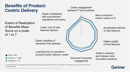 陈勇讲到75%的优秀企业已经开始按照产品规划的方式来规划企业的数字化解决方案。产品型就是要围绕客户的使用情况不断进行精细的优化,并且围绕着数字化解决方案的整个生命周期,一直有产品的管理团队进行维护。产品型的好处就是和客户的关系更加紧密、增加了企业与客户的黏性,这样也能够充分了解他们的需求,最后就会更加敏捷。