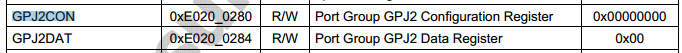 /*GPJ2CON_VA为int型,占4个字节,+1相当于移4个字节