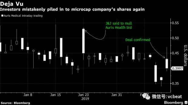 更为有趣的是,就在这则收购消息放出后,一家名为Auris Medical公司的股价出人意料地大幅度上涨,原因仅仅是与Auris Health的名字太像,一些投资者错误地购买了该公司的股票。