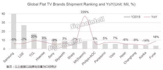 而三、四名的国产品牌TCL与海信都有着不同程度的增长,主要原因是大力拓展国际市场,使得整体出货量大涨。