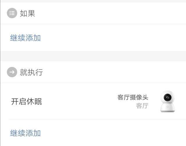 比较遗憾的是,摄像头本身的智能逻辑执行内容只能选择摄像头是否休眠这一项。