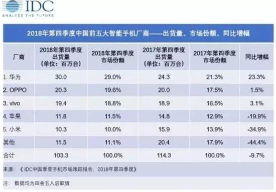 根据市场研究公司IDC最新公布的数据,苹果第四季在中国智能手机出货量排名第四位,市占率为11.5%,领先于小米。