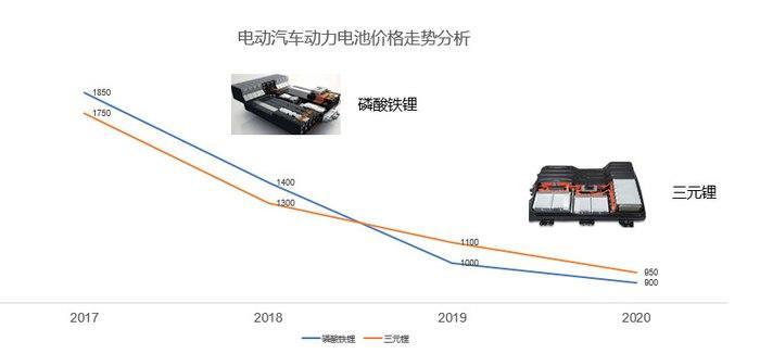 目前新能源汽车锂电池主比较主流的有两个大类:三元锂电池和磷酸铁锂电池,以下是这两类电池在这几年的价格走势。