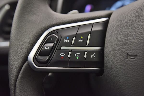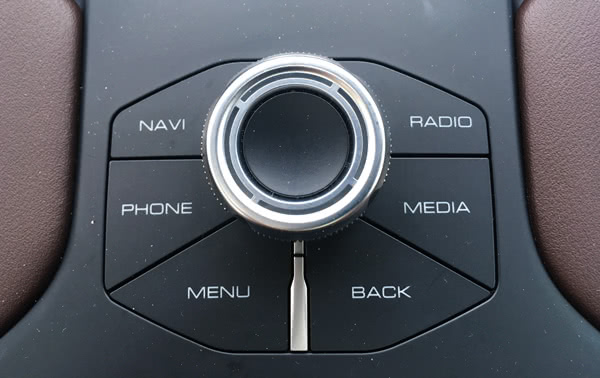 在这个大屏上,用户和“AI功能”之间的每一句对话都可以显示出来,这就让二者的沟通体验更加直观可感知;最重要的,当外界环境不利于语音沟通的时候,用户完全可以用操控触摸屏实现自己的目的,这就给最常用的语音控制上了一个“双保险”,这个“双保险”的可靠之处就在于让中央通道后的多媒体导航按键(下图),都几乎很少有用武之地了。