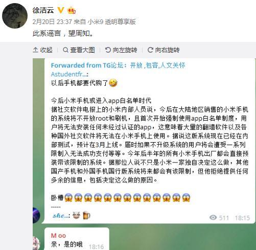 据那位人说不只是小米一家独自决定这么做,其他国产手机和外国手机国行版系统将来都会有该限制,但他拒绝提供任何多余的信息,包括决定这么做的原因。