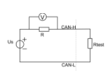 单独测量CAN总线之间的终端电阻大小可使用直流阻抗测量原理,即,给DUT一个直流电压源Us和电阻R,与被测电阻Rtest形成回路,用万用表测量出电阻R两端的电压UR,然后根据欧姆定律可求出被测电阻Rtest。原理图如图2所示: