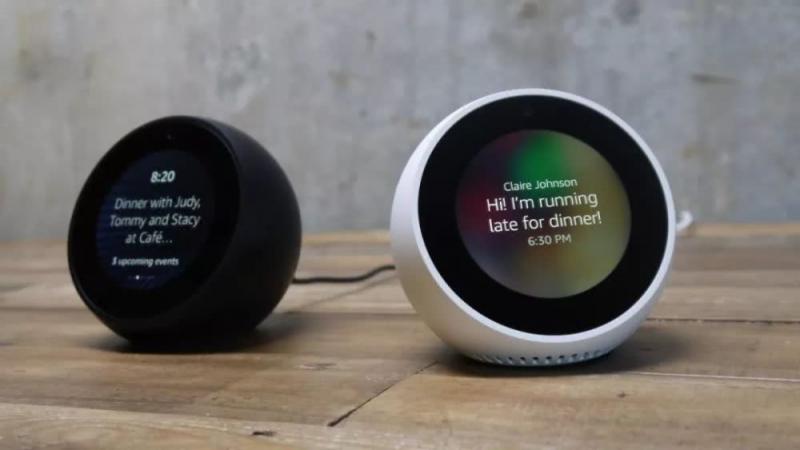 亚马逊还推出了一个带有小显示屏的Echo Spot,它的屏幕只有2.5英寸(480×480像素),在屏幕的顶部有一个摄像机的空间,整个设备的顶部有三个按钮,它们都与表面齐平,形成真正流线型的外观。