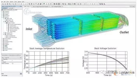 STAR-CCM+广泛应用于汽车工业的CFD分析中,针对电动汽车电池模拟也开发出了专门的应用模块。电池模拟STAR-CCM+ 的电池建模技术将 STAR-CCM+ 的热流模拟与电池设计工具Battery Design Studio(BDS)相结合,以进行电池分析。