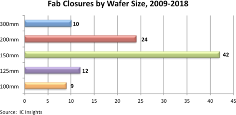 到2018年,有三家150mm晶圆厂被关闭或重建。