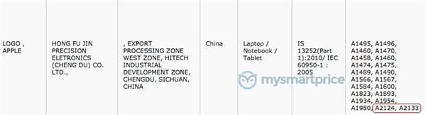 据悉,这两款设备型号分别为“A2124”和“A2133”,两款设备均为中国制造。而早在 1 月份,在欧亚经济委员会的监管库中也出现了 A2123 , A2152 , A2153 , A2154 和 A2126 等苹果产品,其中上述两个型号也包括在内。