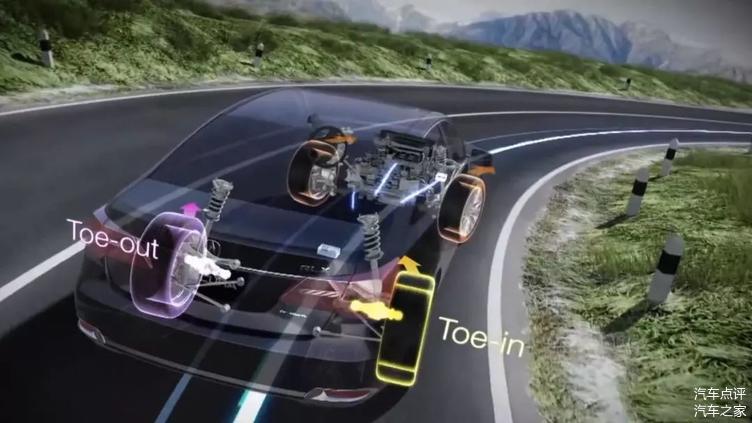 后轮主动转向是指车辆后轮也具有转向功能。在低速行驶时后轮与前轮转向相反,改变瞬时转动中心,减小转弯半径,让城市驾驶和泊车更简单,提升操控性。在高速行驶时后轮与前轮转向相同,让车身平行移动,提升侧向加速响应和偏摆阻尼,提升稳定性。
