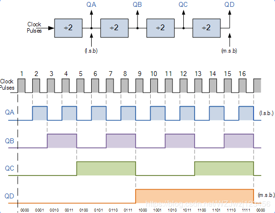 以上图为例,分频器分出来的信号有四个频率。题目中所说 CPU周期信号、节拍周期信号、节拍脉冲信号本质上都是时钟脉冲的不同分频,主要区别在于用途上。