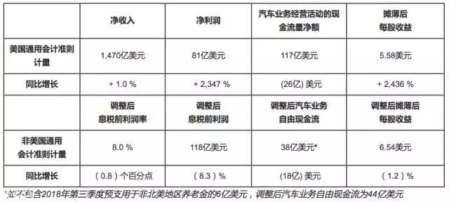 2019年2月6日,太平洋彼岸,已经成为通用汽车最为重要市场的中国还沉浸乙亥年的春节氛围中时,通用汽车在底特律迫不及待地公布了2018年颇为“亮眼”的营收成绩单:得益于稳健的定价优势、跨界车产品的良好表现、全新全尺寸皮卡的成功上市、通用汽车金融业务的持续增长,以及卓有成效的成本控制,公司全年净收入1470亿美元,同比增长1%;净利润81亿美元(其中包含25亿美元重组相关费用),较2017年的3亿美元同比暴增2347%。