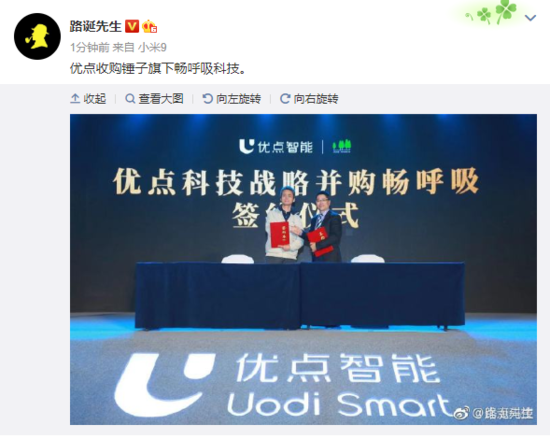 3月8日微博知名互联网资讯博主@路诞先生在微博上发文称,锤子旗下全资子公司畅呼吸科技被前酷派CEO刘江峰创立的优点科技正式并购。
