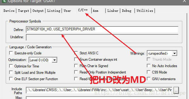 以改为F103C8T6 小容量为例(MD代表中等容量64K或者128K),HD代表(大容量的256K或者512K)