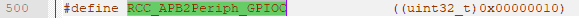 其中参数RCC_APB2Periph取值为在"stm32f10x_rcc.h"中预定义的值,这里对GPIOC的操作为RCC_APB2Periph_GPIOC,定义如下: