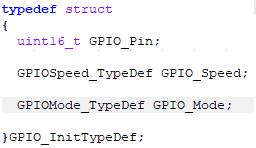 其中第一个参数GPIOx的取值在"stm32f10x.h"中定义,这里用GPIOC;第二个参数GPIO_InitStruct为GPIO_InitTypeDef指针类型,GPIO_InitTypeDef类型在"stm32f10x_gpio.h"文件中定义: