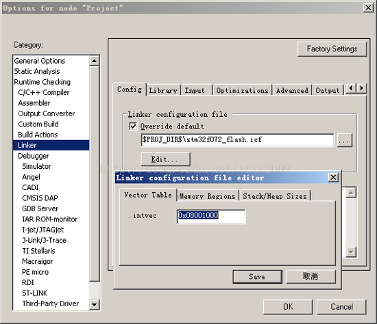 之后还要设置开发工具里面的起始位置,这里以IAR为例: