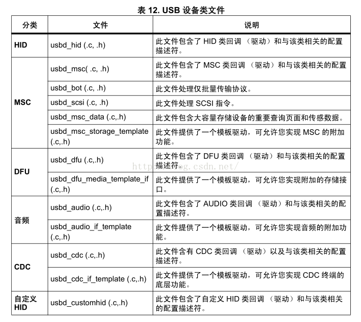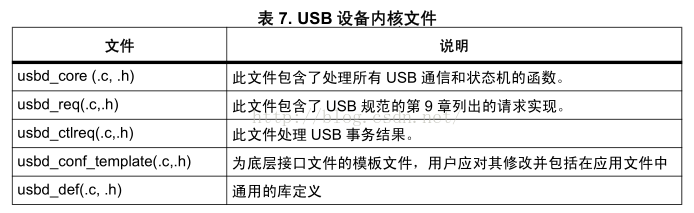 其中的usbd_xxx_if_template文件需要由用户实现,目前跟USB设备库相关的文件有两个需要用户去实现即usbd_conf文件和usbd_xxx_if_template文件。至此USB器件库的概述说明就完毕了,更多详细情况查看USB器件库文档即可。