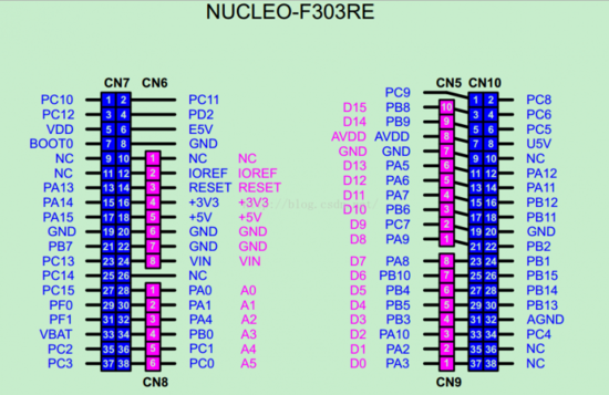 NUCLEO-F303RE接口图如下